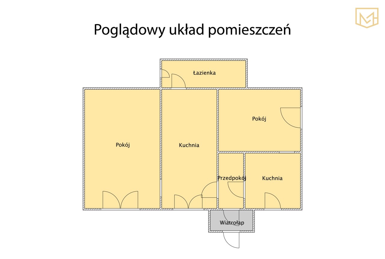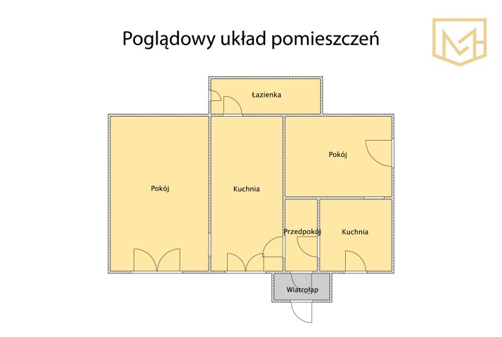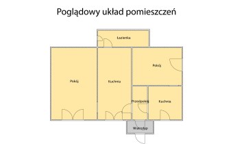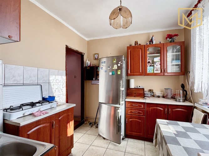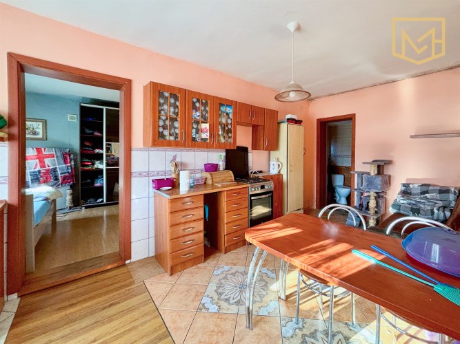 Cała część mieszkalna znajduje się na parterze budynku i obejmuje: wiatrołap, przedpokój, dwa pokoje, dwie kuchnie oraz łazienkę. Układ ma charakter tradycyjny, z wyraźnym podziałem na osobne pomieszczenia.