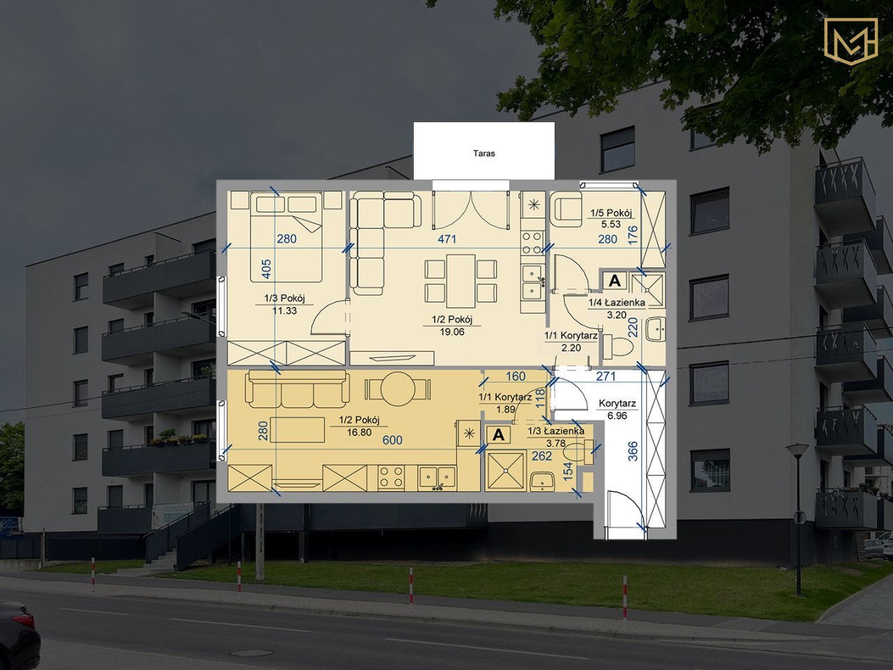 • pokój dzienny (19,06 m²)