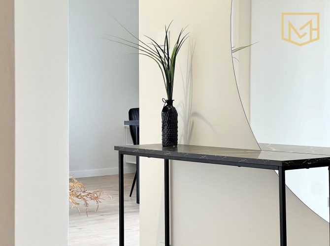 Mieszkanie jest nowe i nigdy niezamieszkałe. Zostało zaprojektowane w neutralnej, ponadczasowej estetyce, co pozwala łatwo dopasować wnętrze do własnych preferencji.
