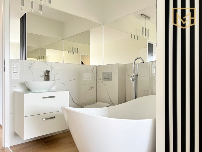 - sypialnia typu master z prywatną łazienką (wanna wolnostojąca, druga toaleta),